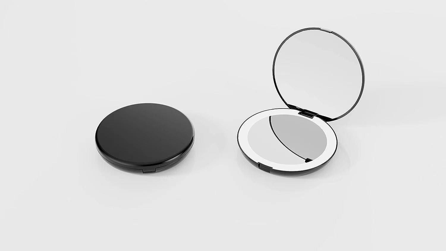 Fancii LED Lighted Travel Makeup Mirror, Rechargeable with 10x/1x Magnifying & 3 Light Settings – Compact, Portable, Large 5” Wide Hand Mirror for Handbag and Purses.